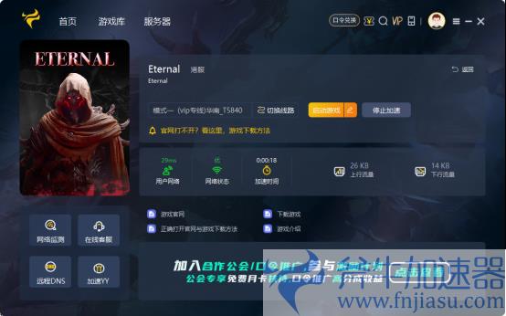 斧牛加速器加速游戏,比较好的一点就是加速《Eternal》玩家与游戏服务 器的连接速度,并且稳 定网络环境,减少游戏过程中的卡顿、掉线、延迟高、丢包、连不上服务 器等问题。