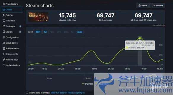 按照SteamDB权威的数据监测,这游戏发售当天晚上,同时在线人数的峰值一下子就涨到了69747人,创下了咱国内互动游戏的新纪录。到现在,这游戏还稳稳地坐在Steam国内区销量第一的位置,市场吸引力那叫一个强。