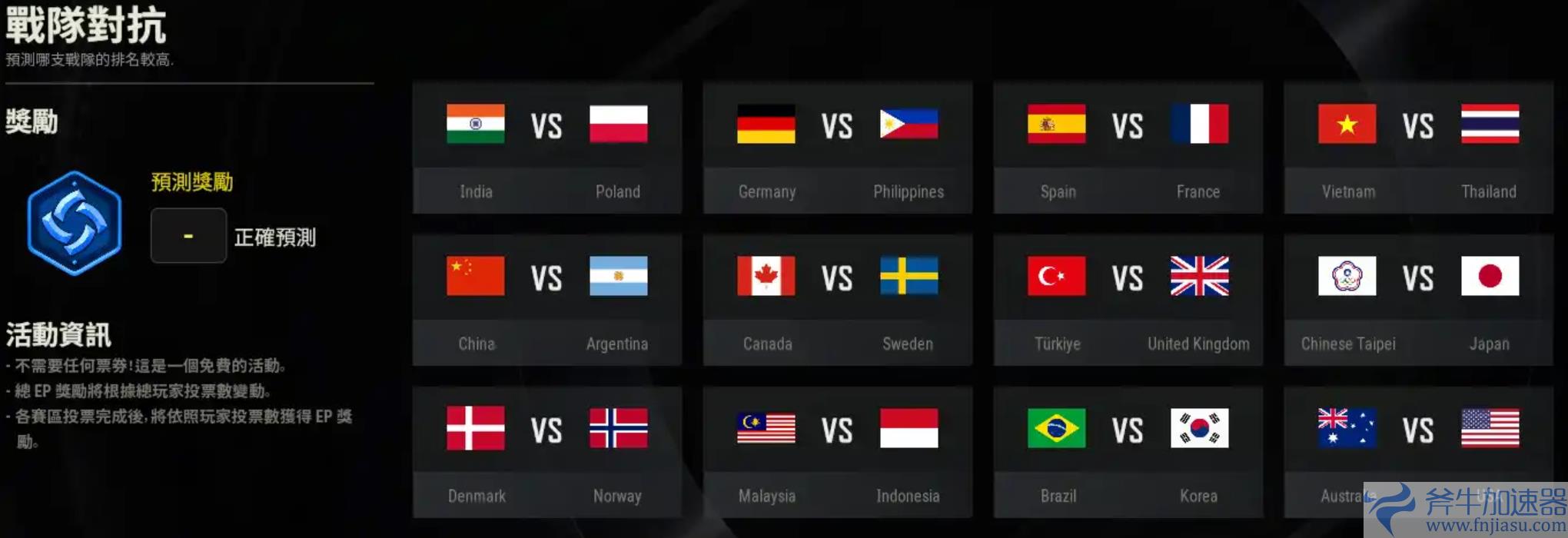这届PNC预测投票通道,北京时间7月25号下午4点整就关啦(就是决赛开始前)。注意咯,PNC2024前八强的队伍,都直接晋级决赛啦,像卫冕冠军韩国队,还有阿根廷、澳大利亚、巴西、中国、泰国、美国、越南这些厉害的队伍都在里面。