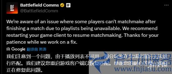 DICE技术部门正在全力修复服务器异常,社区负责人在公告中诚恳致歉:“我们完全理解这个问题对玩家游戏体验造成的影响,工程师们正在全力以赴进行修复工作。衷心感谢各位指挥官的理解与耐心等待。”