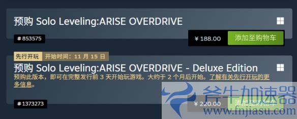 在Steam国区,游戏标准版的价格为188元,而豪华版为220元。选择购买豪华版的玩家将享有提前三天进入游戏的特权,抢先体验主角程肖宇的觉醒之路。