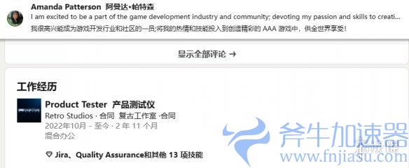 其中呢,测试员Edwin A.很肯定地说,他在Retro Studios给《银河战士Prime 4》做测试都超过两年了。另一个测试员Amanda Patterson虽说没直接提游戏名字,但也清楚表明她在那个工作室工作也超两年了,现在正找新工作机会呢。这俩测试员都是签合同干活的,他们工作变动,说不定就意味着游戏主要的开发工作快到头儿啦。